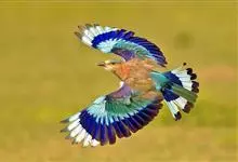 三宝鸟,是佛法僧目佛法僧科三宝鸟属中小型攀禽。成鸟通体为富有光泽的墨蓝绿色,头大而头顶扁平;头部色深近紫黑色,上体至尾泛有铜绿光泽;两翼有幽蓝金属光,初级飞羽黑褐色;羽基淡石青色,形成大块淡蓝,…全部>>