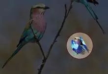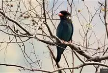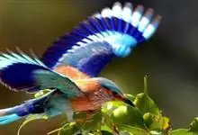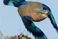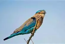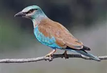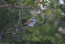 棕胸佛法僧是佛法僧科佛法僧属中型鸟类,体长32~35厘米。黑色的嘴细而下弯。头顶暗蓝色,喉、上背及部分飞羽淡紫;上胸葡萄紫色,具蓝色中央纹,下胸葡萄褐色,腹和尾下覆羽淡蓝色。腰蓝紫色,尾上覆羽辉蓝色。…全部>>
