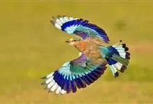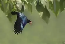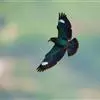 三宝鸟,是佛法僧目佛法僧科三宝鸟属中小型攀禽。成鸟通体为富有光泽的墨蓝绿色,头大而头顶扁平;头部色深近紫黑色,上体至尾泛有铜绿光泽;两翼有幽蓝金属光,初级飞羽黑褐色;羽基淡石青色,形成大块淡蓝,…全部>>