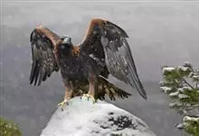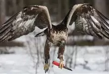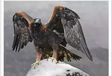 金雕:属于鹰科、雕属的猛禽。体长76-102厘米,翼展达2.3米,体重2-6.5千克。雌雄同色。未成年时,头、颈黄棕色;两翼飞羽除了最外侧三枚外基部均缀有白色,其余身体部分暗褐色;羽尾灰白色,…全部>>