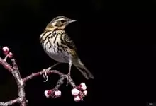 粉红胸鹨:属小型鸣禽,体重18-27克,体长13-18厘米。非繁殖期粉皮黄色的粗眉线明显,背灰而具黑色粗纵纹,胸及两胁具浓密的黑色点斑或纵纹。虹膜暗褐色;嘴黑褐色;下嘴基部色较淡,呈角褐色;跗蹠和趾…全部>>