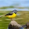 日本鹡鸰:体长约20厘米。上体多黑色,额、颏及眉纹白,下体白,两翼黑而具白色横斑及羽缘,尾黑而边缘白色。虹膜深褐色;嘴黑色;脚黑色。飞行时发出嘁喳声,具复杂而独特的鸣声。喜农田、稻田和溪流。…全部>>