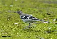 山鹡鸰:是中等体型的林鹡鸰,体长约17厘米,主要羽色为褐色及黑白色。头部和上体橄榄褐色,眉纹白色,从嘴基直达耳羽上方,下体白色,胸部具有两道黑色横斑纹,下面的横斑纹有时不连续。两翼黑褐色,…全部>>