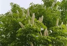 七叶树,又名梭罗树、猴板栗、娑罗树等,是无患子科七叶树属下的一种落叶乔木。七叶树树皮深褐色或灰褐色,小枝、圆柱形,无毛或嫩时有微柔毛。掌状复叶,由5-7小片组成,长圆披针形至长圆倒披针形。花序圆筒形,…全部>>