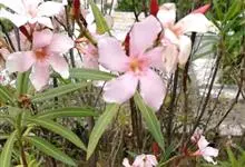 夹竹桃,又名红花夹竹桃、欧洲夹竹桃,是夹竹桃科夹竹桃属的一种常绿直立大灌木,枝条灰绿色,含水液。叶披针形,3叶轮生。聚伞花序顶生,花冠粉红至深红色,花冠漏斗状,有特殊香味。蓇葖果,圆柱形。种子长圆形,…全部>>