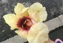 十字架树是紫葳科、葫芦树属小灌木,高3-6米。叶簇生于小枝上;小叶长倒披针形至倒匙形,几无柄,叶柄具阔翅。花1-2朵生于小枝或老茎上;花梗长约1厘米。花萼淡紫色。花冠褐色,具有紫褐色脉纹,近钟状,具…全部>>