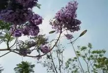 蓝花楹是紫葳科蓝花楹属的落叶乔木,叶对生,小叶椭圆状披针形至椭圆状菱形,顶端急尖,基部楔形;花蓝色,花萼筒状,花冠筒细长,蓝色,裂片圆形;朔果木质,扁卵圆形;花期5-6月。原产于南美洲巴西,…全部>>