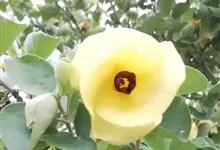 海滨木槿是锦葵科木槿属植物,落叶小乔木,株高3-5米,胸径20厘米,扁球形树冠,枝叶繁盛。厚纸质单叶互生,扁圆形、倒卵形或宽倒卵形,先端钝近平,具短突尖,基部圆形或浅心形,叶缘中上部具细圆齿,…全部>>