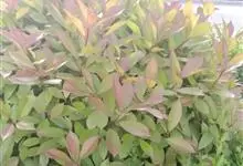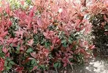 红叶石楠 是蔷薇科,石楠属杂交种,为常绿小乔木或灌木,乔木高可达5米、灌木高可达2米。叶片革质,长圆形至倒卵状、披针形,叶端渐尖,叶基楔形,叶缘有带腺的锯齿,花多而密,复伞房花序,花白色,梨果黄红色,…全部>>