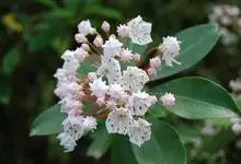 山月桂,亦称阔叶山月桂、美洲月桂、美国石南。杜鹃花科山月桂属的常绿灌木,学名Kalmia latifolia,产于北美洲东部的大多数山区。叶互生、革质、椭圆形至长椭圆形,表面暗绿色,背面黄绿色,…全部>>