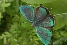 光明女神闪蝶:是鳞翅目、闪蝶科、闪蝶属的昆虫。前足相当退化,短小无爪。前翅R脉5条,常共柄。卵半圆球形。幼虫头上有突起,体节上有枝刺,腹足趾钩1至3序中列式。蛹为垂蛹。雄闪蝶的翅面有绚丽的金属般光泽,…全部>>