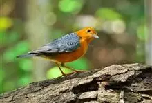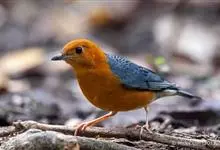 橙头地鸫是鸫科、地鸫属中型鸟类,体长18-22厘米。整个头、颈和下体橙栗色,其余上体包括两翅和尾蓝灰色或橄榄灰色,翅上多具白色翅斑。虹膜褐色或棕褐色,嘴黑褐色或黑色,脚橙黄色或肉黄色。特征极明显。…全部>>