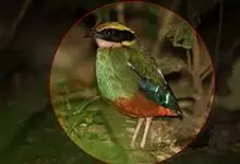 仙八色鸫是雀形目八色鸫科八色鸫属鸟类。雄鸟前额至枕部深栗色,有黑色中央冠纹,眉纹淡黄,背、肩及内侧飞羽辉绿色,飞羽黑色具白翼斑,颏黑褐、喉白,下体淡黄褐色、腹中及尾下覆羽朱红色。雌鸟羽色似雄鸟但较浅淡。…全部>>