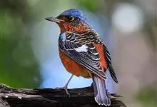 栗腹矶鸫是鸫科、矶鸫属小型鸟类,体长20-25厘米。雄鸟上体呈辉亮的钴蓝色,两翅黑褐色,喉蓝黑色,其余下体栗红色。雌鸟上体橄榄褐色,背具黑色鳞状斑,下体棕白色密杂以黑褐色横斑,黑白相衬,极为醒目,…全部>>