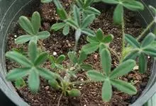 多叶羽扇豆一年生草本,高可达100厘米。茎直立,掌状复叶,小叶披针型至倒披针型,叶质厚,总状花序,花多而稠密,互生,花序轴纤细,花梗甚短,萼二唇形,被硬毛,花冠蓝色,旗瓣和龙骨瓣具白色斑纹。…全部>>