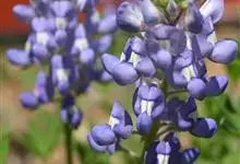 多叶羽扇豆一年生草本,高可达100厘米。茎直立,掌状复叶,小叶披针型至倒披针型,叶质厚,总状花序,花多而稠密,互生,花序轴纤细,花梗甚短,萼二唇形,被硬毛,花冠蓝色,旗瓣和龙骨瓣具白色斑纹。…全部>>