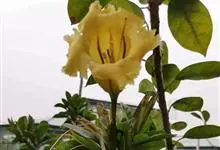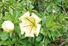 金杯藤 P.S. Green)是茄科、金杯藤属多年生常绿大型藤本。茎及枝条粗壮。叶片互生。长椭圆形。先端突尖。叶面有光泽。全株具有毒乳汁。花顶生,单朵或数朵,花苞棒槌状。从绿色转变为淡黄色。…全部>>