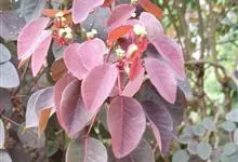 紫锦木是大戟科、大戟属的常绿乔木。叶圆卵形,主脉于两面明显,侧脉数对,边缘全缘,两面红色;花序生于二歧分枝的顶端,总苞阔钟状,裂片呈三角形,边缘具毛,腺体深绿色呈半圆形,…全部>>