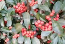 火棘 H. L. Li)是蔷薇科火棘属常绿灌木,老枝呈暗褐色;叶片呈倒卵形,边缘有钝锯齿,齿尖向内弯,两面皆无毛;叶柄短,无毛或嫩时有柔毛;花序是复伞房状,花瓣呈白色近圆形;果球近圆形,…全部>>