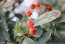 火棘 H. L. Li)是蔷薇科火棘属常绿灌木,老枝呈暗褐色;叶片呈倒卵形,边缘有钝锯齿,齿尖向内弯,两面皆无毛;叶柄短,无毛或嫩时有柔毛;花序是复伞房状,花瓣呈白色近圆形;果球近圆形,…全部>>