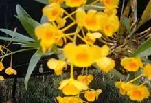 束花石斛是兰科石斛属植物。茎粗厚,肉质,下垂或弯垂,圆柱形,不分枝,具多节。叶二列,互生于整个茎上,纸质,长圆状披针形。伞状花序近无花序柄,每2-6花为一束,侧生于具叶的茎上部;花黄色,…全部>>