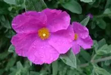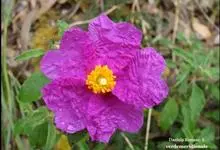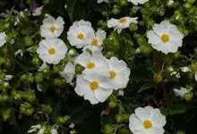 岩蔷薇是半日花科岩蔷薇属植物,多年生直立亚灌木,高约1.5-2.5米,全体具胶黏腺体。枝条褐色,侧枝分为生长枝和结果枝。单叶对生,披针形至线状披针形,长5-8厘米,宽0.5-1.5厘米。…全部>>