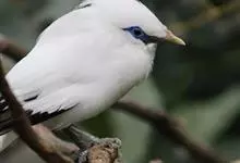 长冠八哥:是一种大型椋鸟,体长约25厘米,雌雄相似,外形俊朗,羽冠发达,眼睛四周和面部裸出,裸露部分为蓝色,全身羽毛纯白色,尾部和翼端的边缘呈黑色,脚灰色。全身白色,具较长冠羽,…全部>>
