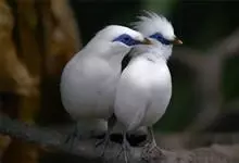 长冠八哥:是一种大型椋鸟,体长约25厘米,雌雄相似,外形俊朗,羽冠发达,眼睛四周和面部裸出,裸露部分为蓝色,全身羽毛纯白色,尾部和翼端的边缘呈黑色,脚灰色。全身白色,具较长冠羽,…全部>>