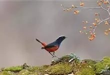 红头咬鹃: 体大,体长约33厘米,体重75-110克。头、颈暗绯红色;背、肩锈褐色。两翅黑色,翅上覆羽和内侧飞羽密被白色细虫蠹斑纹,初级飞羽黑色,外侧具白色羽缘;腰和尾上覆羽较多锈色。中央尾羽深栗色,…全部>>