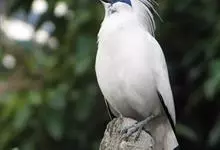 长冠八哥:是一种大型椋鸟,体长约25厘米,雌雄相似,外形俊朗,羽冠发达,眼睛四周和面部裸出,裸露部分为蓝色,全身羽毛纯白色,尾部和翼端的边缘呈黑色,脚灰色。全身白色,具较长冠羽,…全部>>