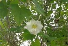 木芙蓉,锦葵科木槿属落叶灌木或小乔木。小枝上有细绒毛;叶片为卵状心形,托叶为披针形,常早落;花单生,花萼为钟形,花冠初为白色或淡红色,后逐渐变为深红色;果实为扁球形,有淡黄色的毛附着。花期8到10月。…全部>>
