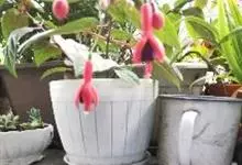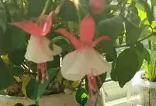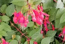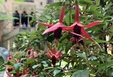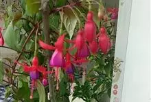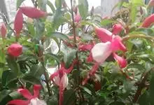 倒挂金钟是柳叶菜科倒挂金钟属亚灌木植物。茎直立,多分枝;幼枝带红色,被短柔毛与腺毛,老时渐无毛;叶对生,卵形或窄卵形,脉常带红色;常带红色,被短柔毛与腺毛;花筒红色,筒状钟形,…全部>>