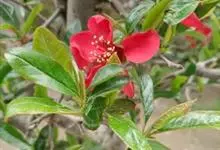 贴梗海棠Nakai)是蔷薇科、木瓜海棠属植物。落叶灌木,高达2米,枝条直立开展,有刺。叶片卵形至椭圆形,稀长椭圆形,长3-9厘米,宽1.5-5厘米。花先叶开放,3-5朵簇生于二年生老枝上。…全部>>