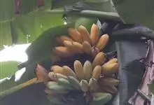 香蕉’),芭蕉科芭蕉属多年生草本植物,植株丛生,有匐匍茎;假茎浓绿有黑色斑点;叶片长圆形,上面为深绿色,无白粉,下面浅绿色;花朵为乳白色或淡紫色;果实呈弯曲的弓状,有棱,果皮为青绿色,…全部>>
