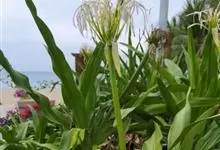 文殊兰 Baker)是石蒜科文殊兰属的多年生粗壮草本。鳞茎长圆柱形;叶深绿色,线状披针形,边缘波状,先端渐尖具尖头;花茎直立,与叶近等长;总苞片披针形;小包片线形;雄蕊淡红色,花药线形,…全部>>