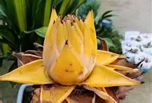 地涌金莲 C. Y. Wu ex H. W. Li)是芭蕉科地涌金莲属多年生丛生草本。地涌金莲徦茎矮小,真茎在开花前短小;叶片长椭圆形;花序直立,生于假茎上,苞片淡黄或黄色;浆果三棱状卵形;种子大,…全部>>