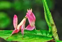 兰花螳螂:是昆虫纲、花螳科的动物。有着较为极端的性二态,成年雌性大约6-7厘米长,而雄性只有大约2.5厘米。和雌性比起来,雄性极为矮小,雄性和雌性也有不同的外观,它们的步肢演化出类似花瓣的构造和颜色…全部>>