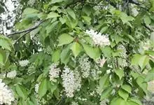稠李是蔷薇科、李属的乔木。株高达15米;幼枝被绒毛,冬芽无毛或鳞片边缘有睫毛;叶椭圆形、长圆形或长圆状倒卵形,基部圆或宽楔形,有不规则锐锯齿,花序梗和花梗无毛,萼筒钟状,萼片三角状卵形,花瓣白色,…全部>>