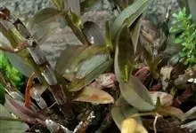 具槽石斛:茎通常直立,肉质,扁棒状,下部收狭为细圆柱形,不分枝,具纵条纹和数个节。叶纸质,数枚,互生于茎的近顶端,常斜举,长圆形。总状花序从当年生具叶的茎上端发出,长8-15厘米,下垂,…全部>>