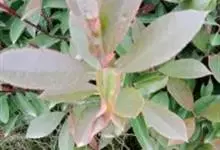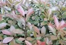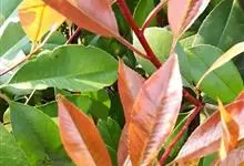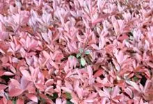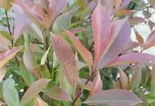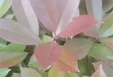 红叶石楠 是蔷薇科,石楠属杂交种,为常绿小乔木或灌木,乔木高可达5米、灌木高可达2米。叶片革质,长圆形至倒卵状、披针形,叶端渐尖,叶基楔形,叶缘有带腺的锯齿,花多而密,复伞房花序,花白色,梨果黄红色,…全部>>