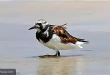 翻石鹬:体重82-135克,体长180-240毫米。体型高矮兼称,看起来十分的滑稽。它们在繁殖季时体色非常醒目,由栗色、白色和黑色交杂而成,嘴短,黑色,脚橙红色。到了冬天,翻石鹬身上的栗红色就会消失,…全部>>