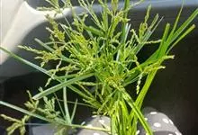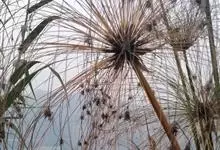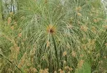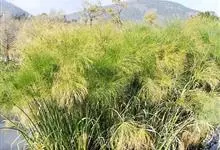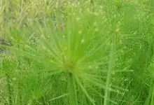 纸莎草是莎草科、莎草属的植物,具有粗壮的根状茎,高达2-3米,茎秆簇生,粗壮,直立,钝三棱形。叶退化呈鞘状,茎秆顶端着生总苞片,呈伞状簇生,总苞片叶状,披针形,顶生花序伞梗极多,细长下垂。瘦果灰褐色,…全部>>
