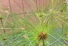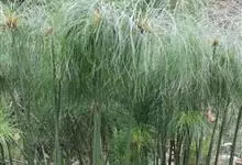 纸莎草是莎草科、莎草属的植物,具有粗壮的根状茎,高达2-3米,茎秆簇生,粗壮,直立,钝三棱形。叶退化呈鞘状,茎秆顶端着生总苞片,呈伞状簇生,总苞片叶状,披针形,顶生花序伞梗极多,细长下垂。瘦果灰褐色,…全部>>