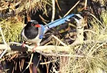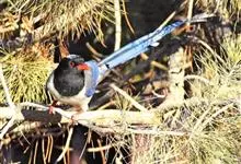 红嘴蓝鹊,别名山鹊、长尾鹊,是鸦科蓝鹊属的一种观赏性较强的大型鸣禽。该物种为体长54~65cm,头、颈、喉和胸黑色,头顶至后颈有一块白色至淡蓝白色或紫灰色块斑,其余上体紫蓝灰色或淡蓝灰褐色。尾长呈凸状,…全部>>