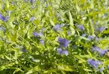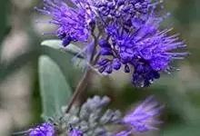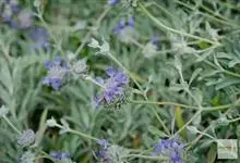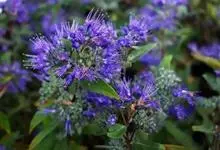 蒙古莸:为唇形科莸属落叶小灌木。常自基部即分枝,嫩枝紫褐色,圆柱形,有毛,老枝毛渐脱落。叶片厚纸质,线状披针形或线状长圆形,背面密生灰白色绒毛。聚伞花序腋生,无苞片和小苞片,花萼钟状,花冠蓝紫色。…全部>>