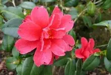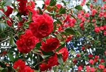 滇山茶:灌木至小乔木,有时高达15米,嫩枝无毛。叶阔椭圆形,上面干后深绿色,发亮,下面深褐色,无毛,侧脉6-7对,边缘有细锯齿。花顶生,红色,直径10厘米,无柄;苞片及萼片10-11片,花瓣红色,…全部>>