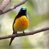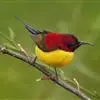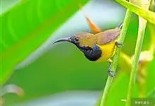 黄腹花蜜鸟是雀形目太阳鸟科花蜜鸟属鸟类。体型较小、喙略短而弯、腹部黄色。雄鸟繁殖季节颏及胸黑紫色并泛金属光泽,具有绯红色及灰色胸带,将上腹部黑色斑与前胸隔开,肩斑为橙黄色丝质羽,上体橄榄绿色,…全部>>