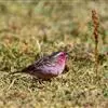 红腰朱雀:体长12-14厘米,小型鸟类。雄鸟前额和眉纹玫瑰粉红色,头顶和一宽的贯眼带深红褐色,背红棕褐色具暗褐色纵纹,腰玫瑰粉红色,两翅和尾暗褐色,羽缘色淡颊、头侧、颏、喉和其余下体玫瑰粉红色。雌鸟…全部>>