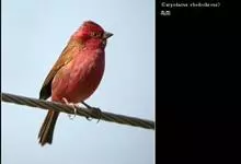 喜马拉雅白眉朱雀:小型鸟类,体长15-17厘米,体重24-35克。额基、眼先深红色,前额和一条长而宽阔的眉纹珠白色沾有粉红色并具丝娟光泽,在暗色的头部极为醒目。头顶至背棕褐或红褐色、具黑褐色羽干纹,…全部>>