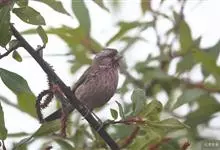 红眉朱雀:体长15厘米,是一种中等体型的朱雀。上体褐色斑驳,眉纹、脸颊、胸及腰淡紫粉,臀近白。雌鸟无粉色,但具明显的皮黄色眉纹。雄雌两性均甚似体型较小的曙红朱雀,但嘴较粗厚且尾的比例较长。…全部>>